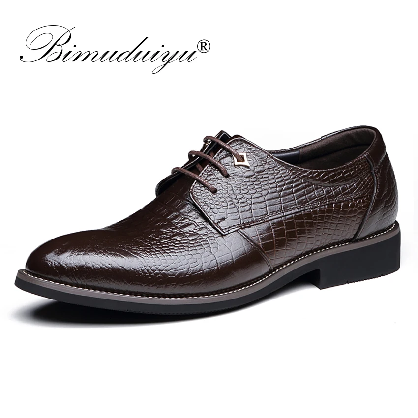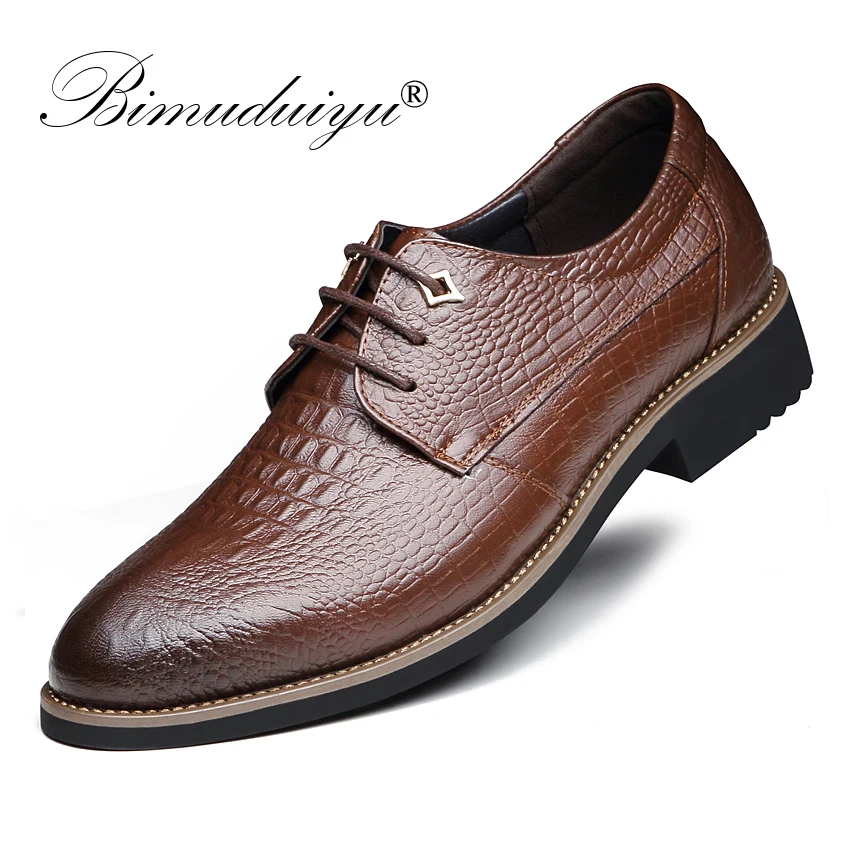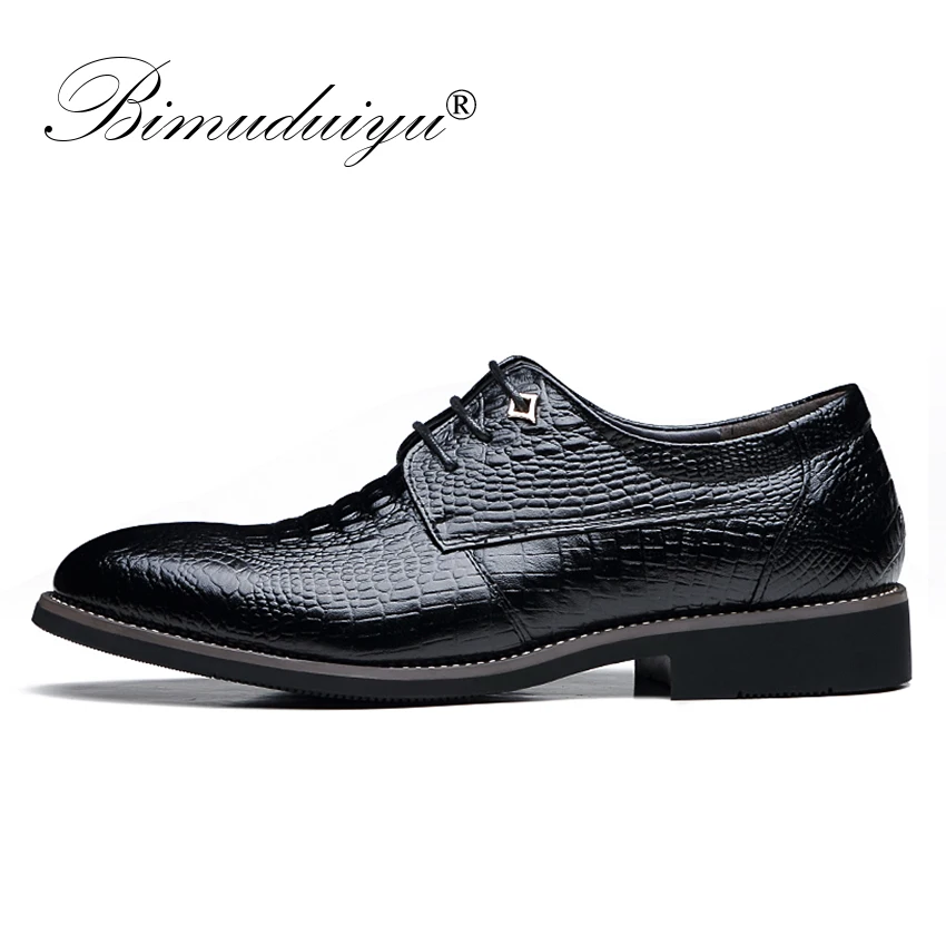 BIMUDUIYU Classic Business Formal Shoes British Style Men's Genuine Leather Crocodile Shoes Fashion